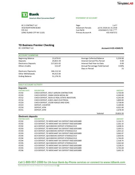 Read Online td bank statement template Doc